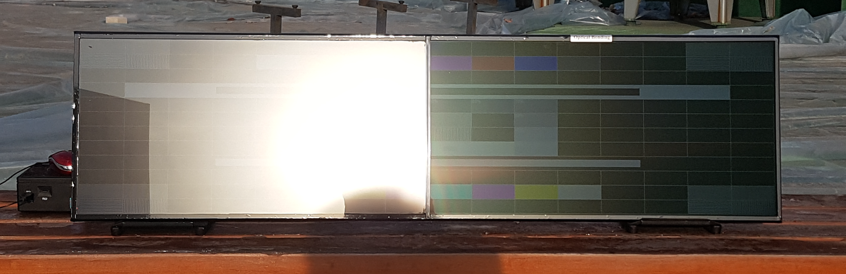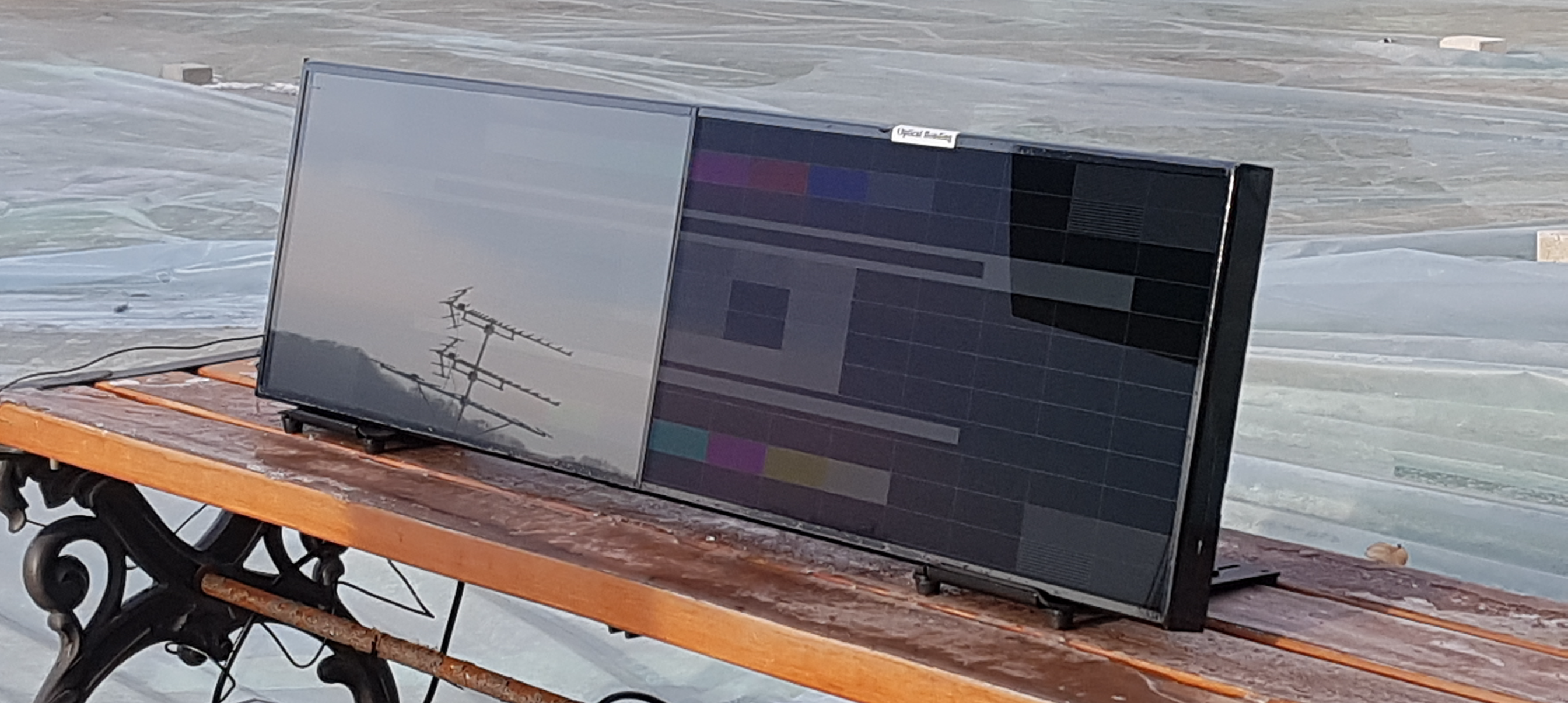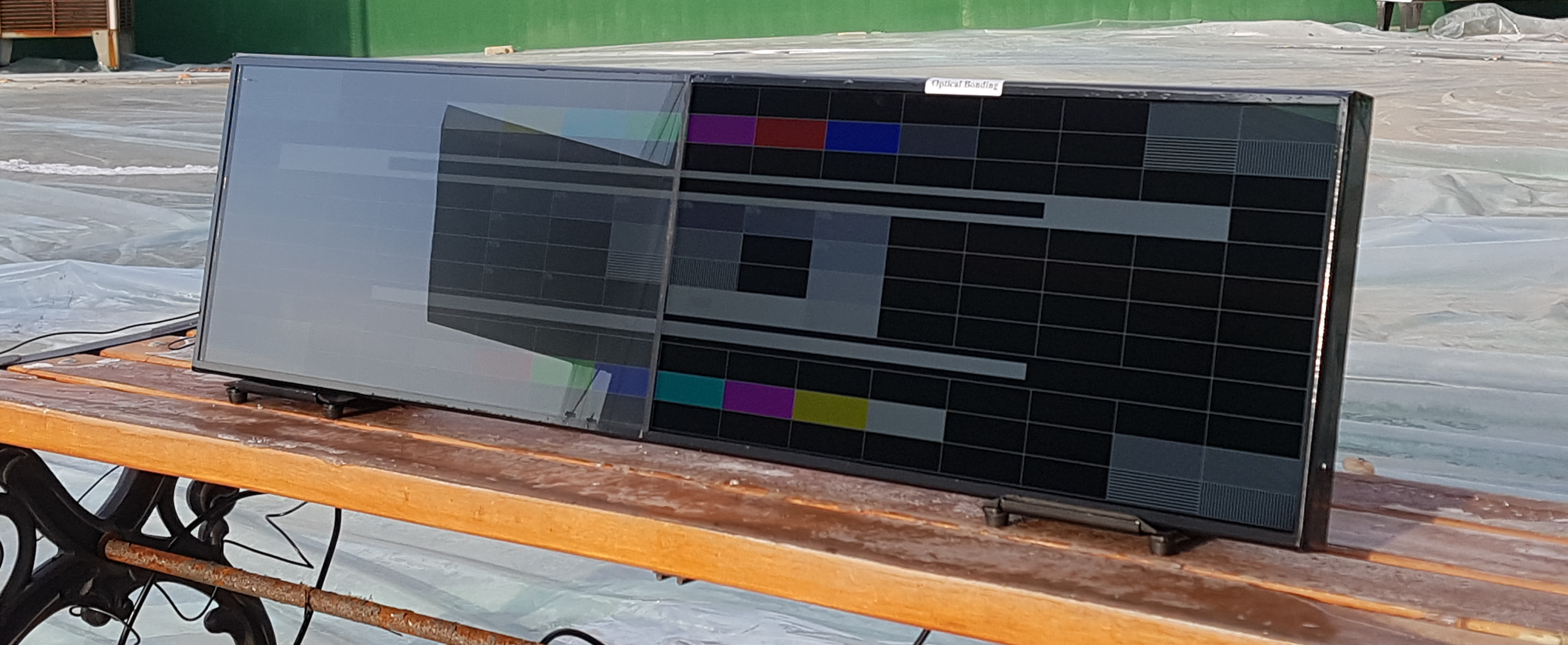 옵티컬 본딩에 대한 옥외 시연 테스트 장면입니다.